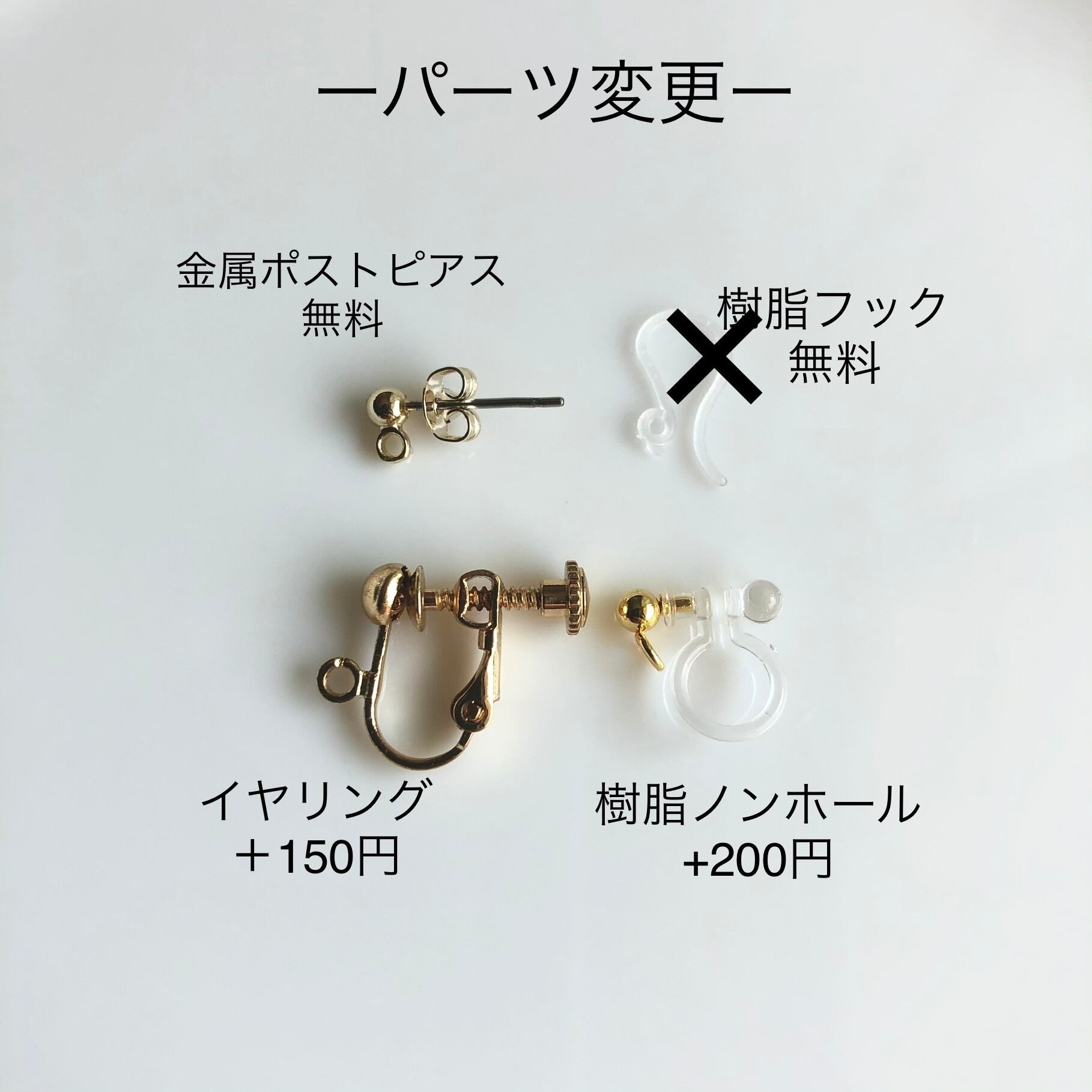 透け感のあるパールホワイトの銀木犀ににウェーブを合わせてピアス・イヤリングを作りました。