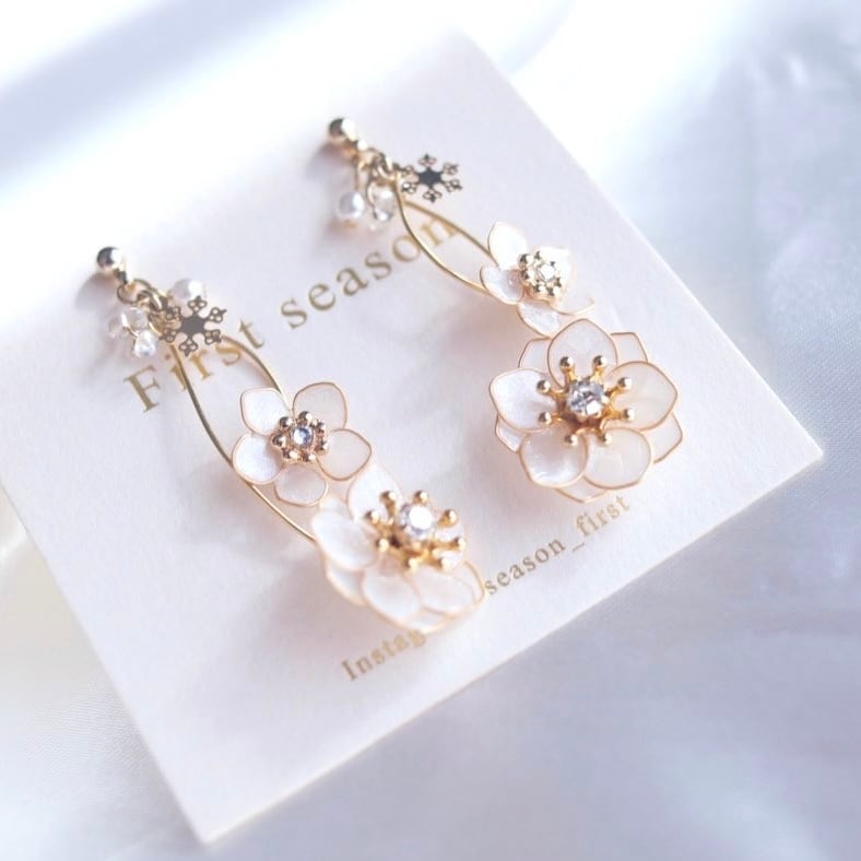 ゴールド フラワー #花 お出かけ レジン 贈り物 誕生日 イベント #クリスマス プレゼント #ギフト #クリスマスローズ 花 冬 冬アクセサリー AWコレクション 冬コーディネート #記念日 #雪の結晶