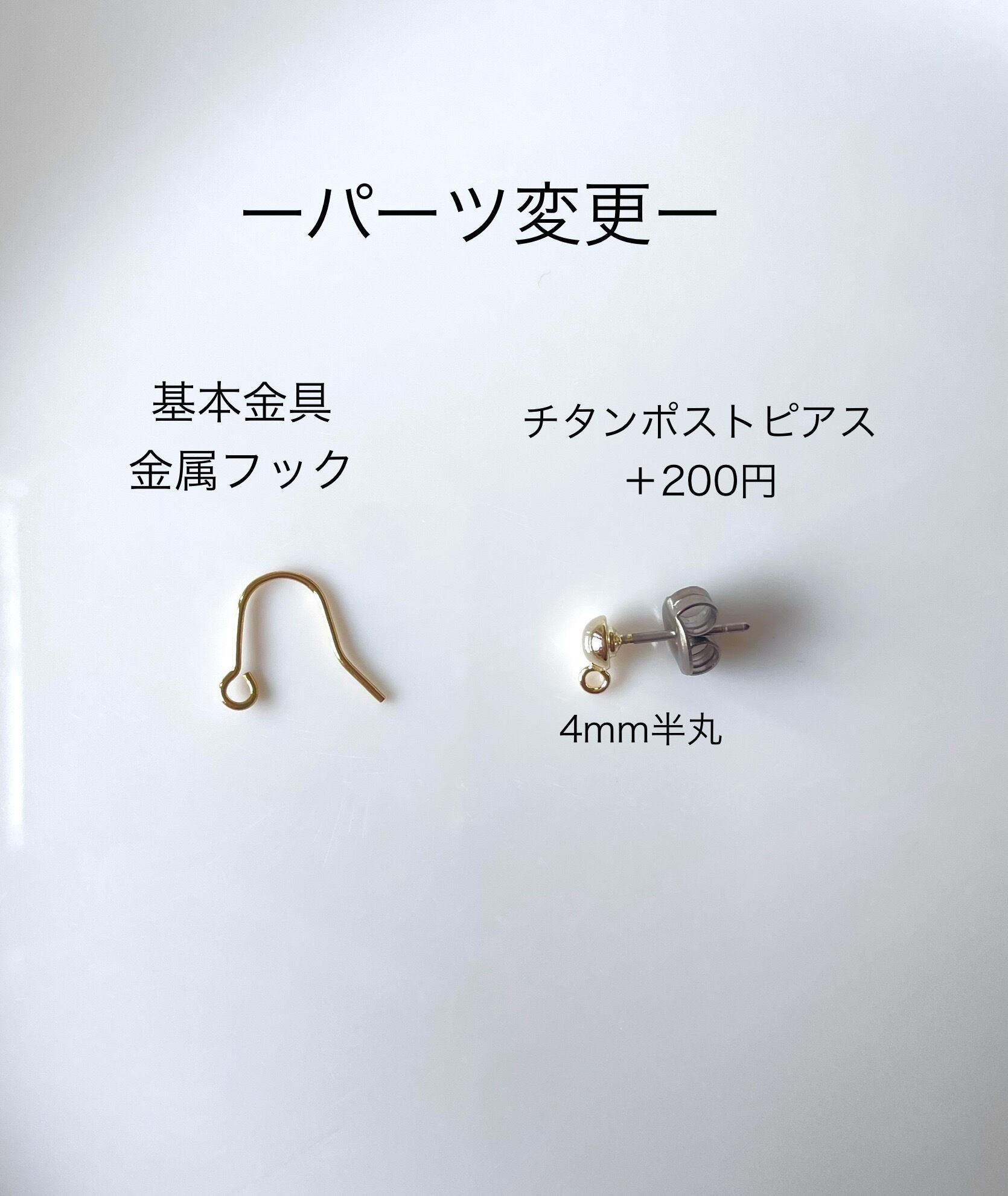 指定のない場合は、金属ポストピアスでのお届けになります。