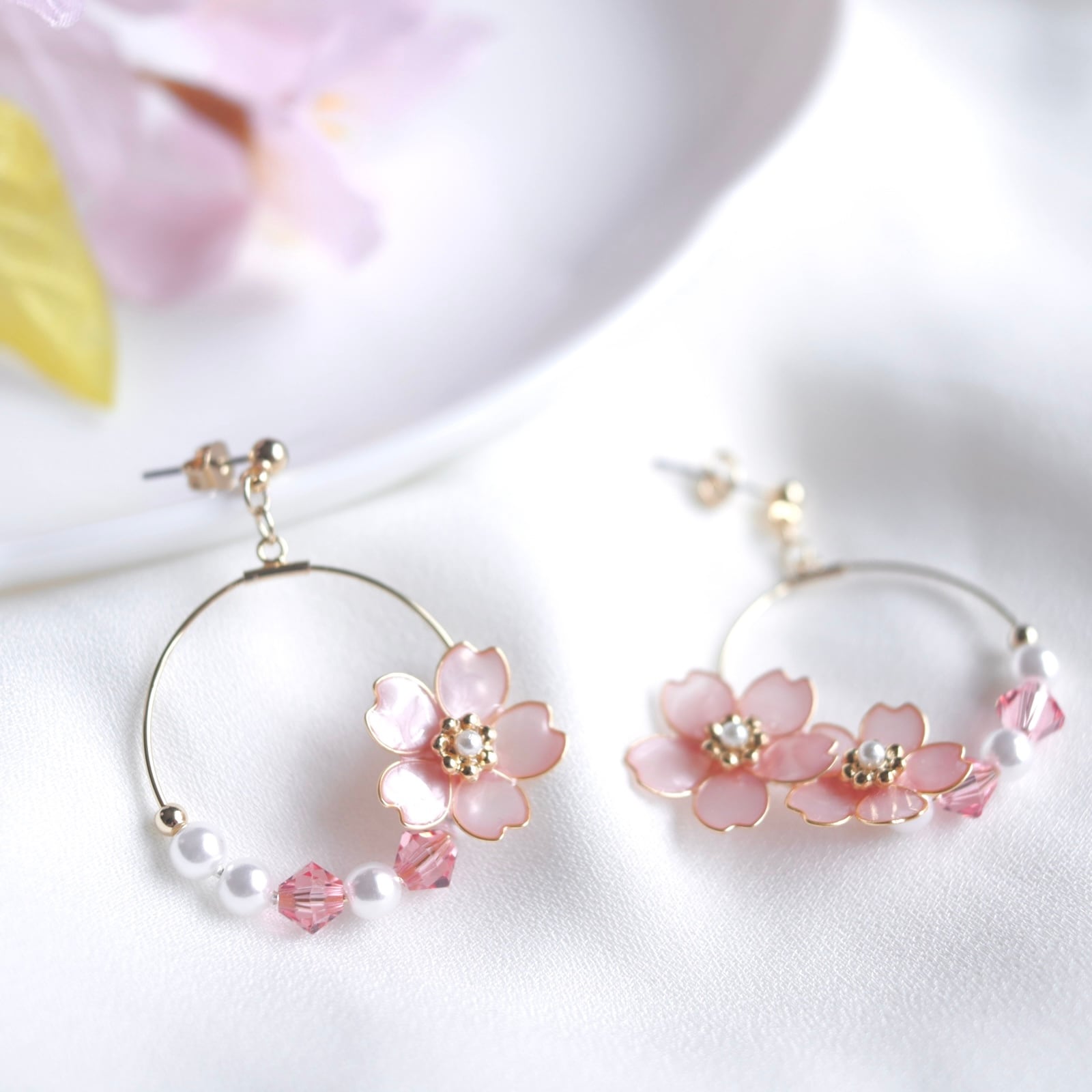 柔らかな春の日差しに咲き誇る桜をキラキラと輝くピアス・イヤリングにしました。