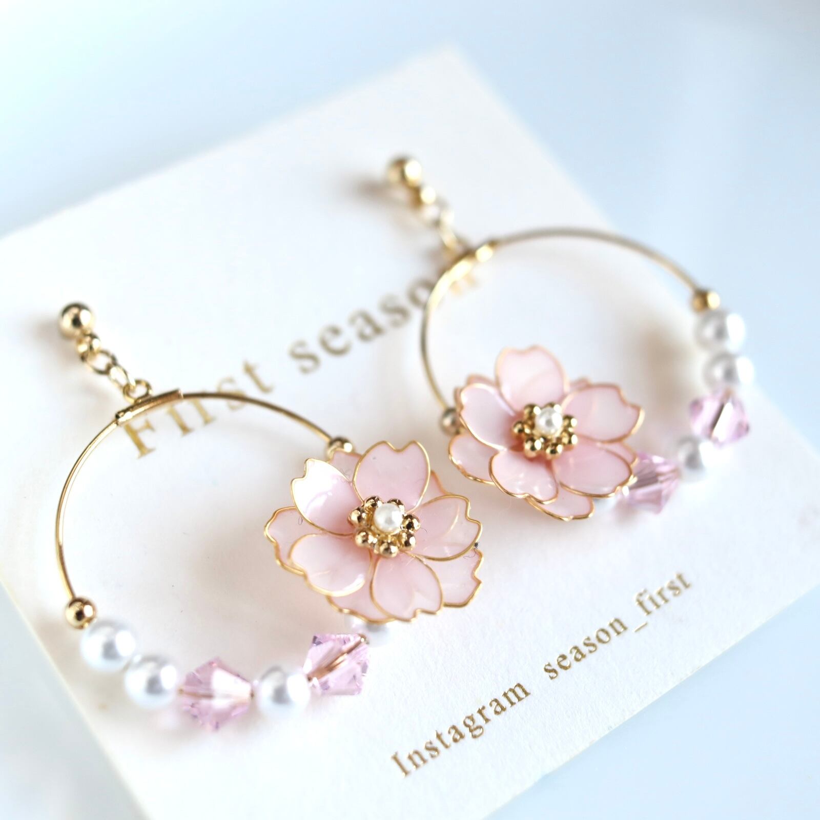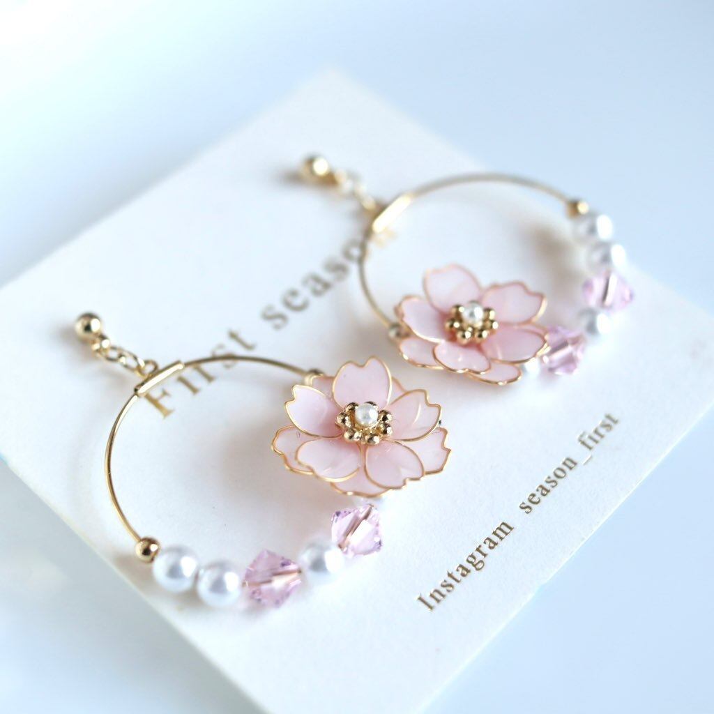 ディップアート ワイヤーフラワー 淡色 パステルカラー パール フラワー #花 フープ お出かけ 花びら #レジン 贈り物 誕生日 イベント プレゼント #ギフト #ワイヤーアクセサリー 花 #SSコレクション 春コーディネート #記念日 #First season #ファーストシーズン #フープピアス #春 #桜 #サクラ #さくら #ピンク #桃色 #sakura